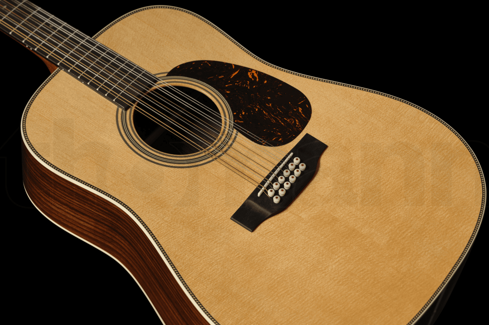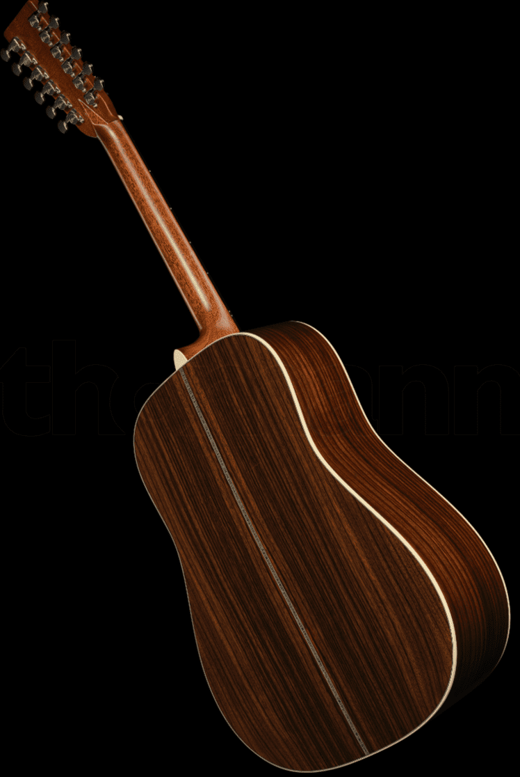 Двенадцатиструнная гитара Martin Guitars HD12-28 имеет корпус Dreadnought в натуральной отделке. Верхняя дека изготовлена из ели, а спинка и обечайка — из палисандра. Гладкий гриф из отборной древесины твёрдых пород соединён с кузовом креплением «ласточкин хвост» на уровне четырнадцатого лада. Накладка из чёрного дерева оснащена мензурой 24,9 дюйма, верхним порожком шириной 46 мм и 20 ладами со вставками в виде точек из абалона.