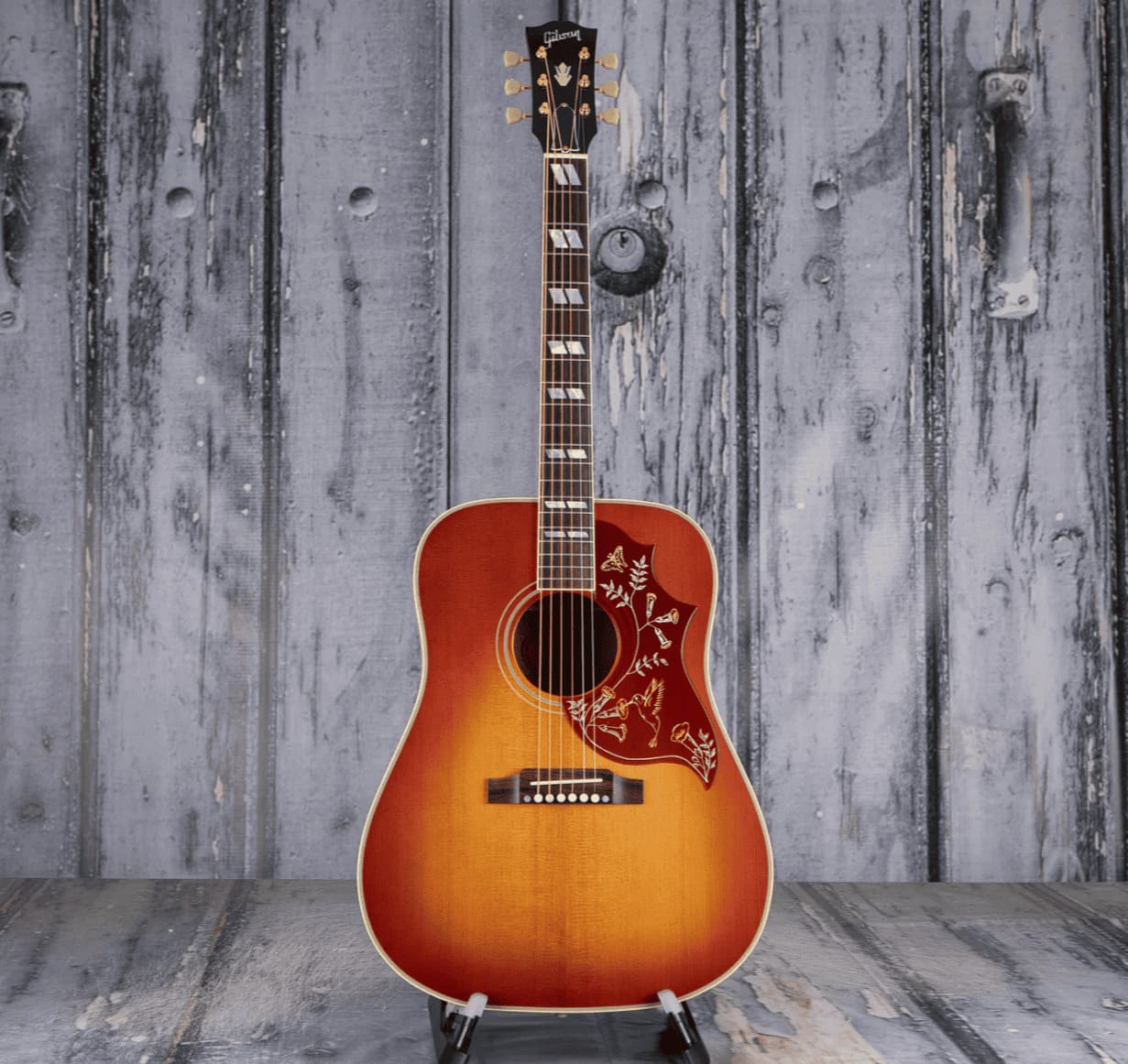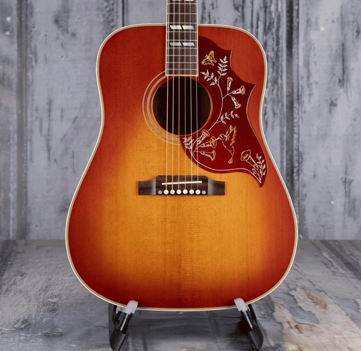 Представленная в 1960 году как первая модель Gibson с квадратными плечами, Hummingbird™ появилась на заре новой эры в музыке и быстро завоевала популярность у ведущих музыкантов сцены. Модель Hummingbird 1960 года выпуска, изготовленная из термически состаренной ели Ситка, отражает внешний вид и характеристики этих ранних икон. Благодаря фиксированному мосту, она отделана новой тонкой отделкой Gibson, включая ручную обработку VOS.