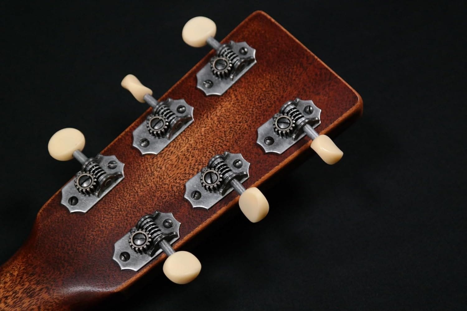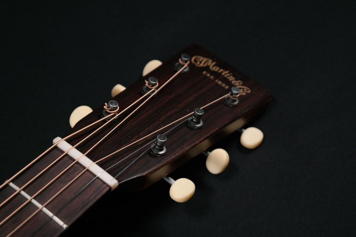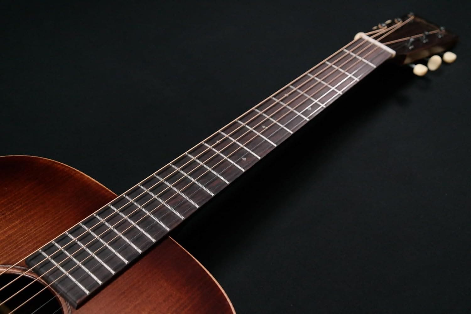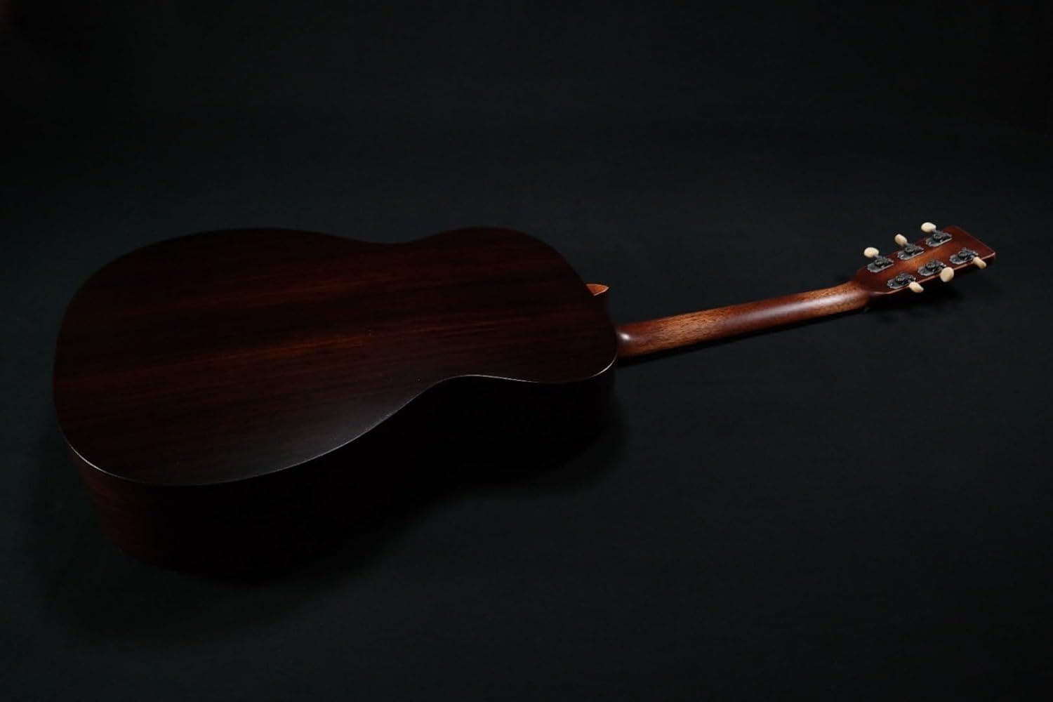 Гитара Martin Guitars 000-16 StreetMaster в цвете Dark Mahogany имеет корпус в форме Auditorium для сбалансированного звучания. Верхняя дека выполнена из ели, а спинка и обечайка — из восточноиндийского палисандра. Такое сочетание материалов позволяет добиться объёмного и басистого звука. Гладкий гриф с профилем Modified Low Oval изготовлен из красного дерева и соединён с кузовом креплением «ласточкин хвост» на уровне четырнадцатого лада. Накладка из палисандра оснащена мензурой 24,9 дюйма, верхним порожком из кости шириной 44,45 мм и 20 ладами со вставками из абалона в виде ромба и квадратов.