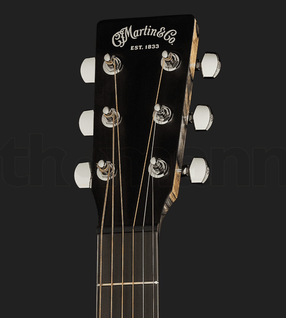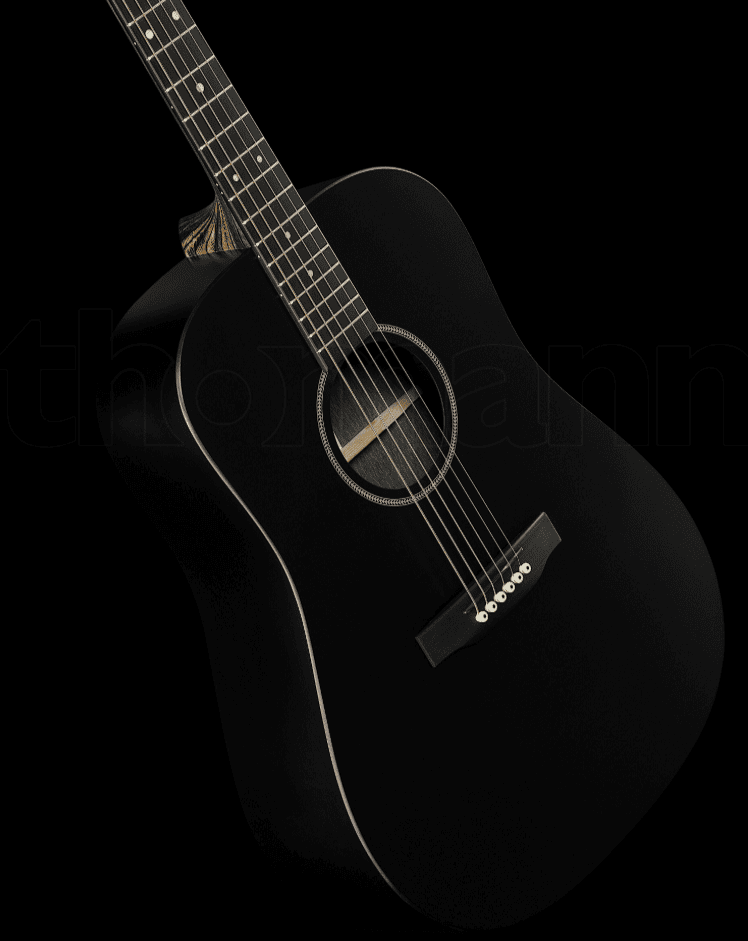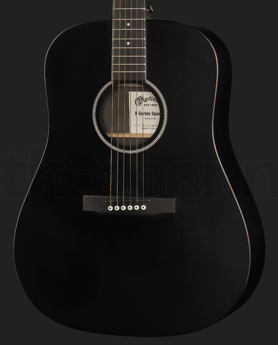 Гитара Martin Guitars D-X1 Black в черном исполнении имеет корпус из коа в форме Dreadnought для громкого и выразительного звучания. Гриф из красного дерева соединён с корпусом на уровне четырнадцатого лада. Тонкая накладка из ричлайта оснащена мензурой размером 25,6 дюймов, верхним порожком шириной 44,45 мм и 20 ладами со вставками в виде точек из абалона.