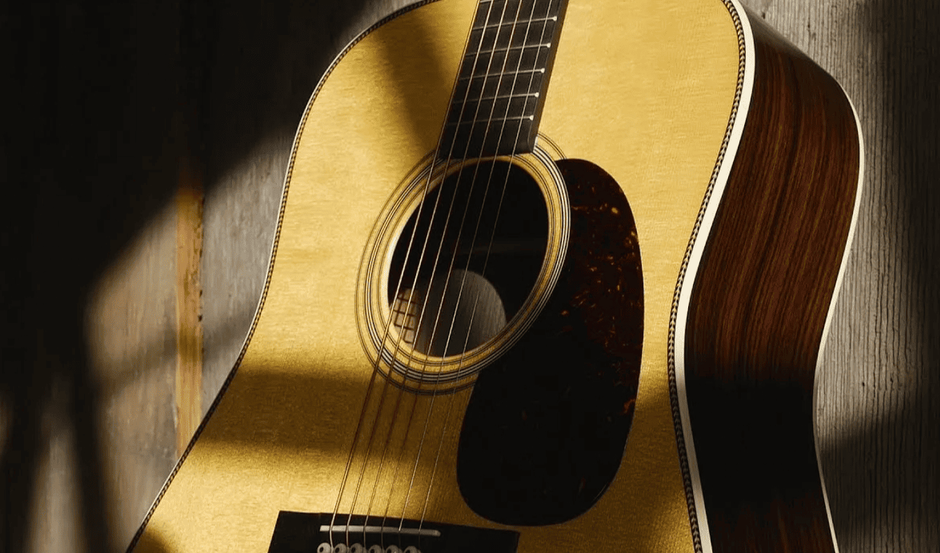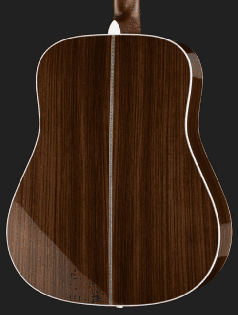 Гитара Martin Guitars HD-28 из серии Standard обладает глянцевым корпусом Dreadnought с X-образной скобой внутри со смещением вперед. Верхняя дека из ели, украшенная пикгардом с узором черепахового панциря, а также спинка и обечайка из восточно-индийского палисандра имеют натуральную отделку. Гладкий гриф из красного дерева с профилем Modified Low Oval соединён с кузовом креплением «ласточкин хвост» на уровне четырнадцатого лада. Накладка из чёрного дерева оснащена мензурой 25,4 дюймов и 20 ладами с инкрустацией в виде точек. Благодаря такому сочетанию современных технических решений с тоновой древесиной модель воспроизводит мощные нижние частоты и насыщенный тембр.