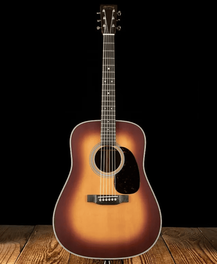 Martin Guitars D-28 Satin Amberburst — улучшенная версия легендарной гитары 50-60-х годов, на которой в своё время играли такие исполнители, как Хэнк Уильямс, The Beatles, Джонни Кэш, Нил Янг и Боб Дилан. Модель в сатиновой отделке Satin Amberburst отличается сочетанием винтажных деталей — открытые колки, состаренные белые акценты и пикгард с узором черепашьего панциря — с современными функциями, такими как обновлённый профиль грифа. При этом корпус изготовлен из палисандра с верхней декой из ели, что наделяет инструмент резонансным звучанием с глубокими басами и насыщенными обертонами. Гитара также дополнена пружинами, смещенными вперёд, чтобы обеспечить большую вибрацию верхней части.
