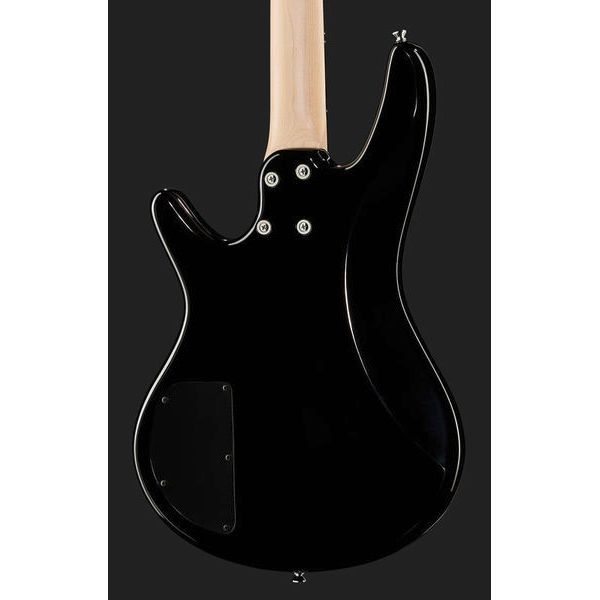 Бас-гитара Ibanez GSR180-BK в чёрной отделке имеет корпус из окуме с двумя вырезами для удобного доступа к верхнему регистру. Кленовый гриф с профилем GSR4 соединён с кузовом болтами. Накладка из амаранта Purpleheart оснащена радиусом 12 дюймов, 34-дюймовой мензурой и 22 средними ладами со вставками в виде белых точек.