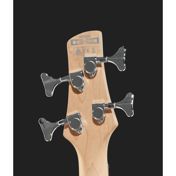 Бас-гитара Ibanez GSR200-BK в чёрной отделке обладает корпусом в стиле Jazz Bass из окуме. Кленовый гриф на болтах имеет уникальный профиль GSR4, разработанный для 4-струнных басов. Накладка из амаранта Purpleheart оснащена 34-дюймовой мензурой, 12-дюймовым радиусом для облегчения изгибов струн и 22 ладами среднего размера с инкрустацией в виде белых точек.
