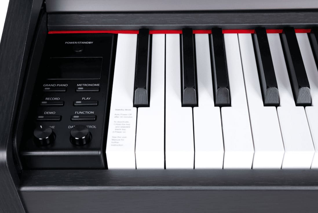 Цифровое пианино Artesia A100 представляет собой превосходный инструмент, который подойдет тем, кто начинает свое обучение игре на клавишных инструментах. Оно оснащено 88 динамическими молоточковыми клавишами с взвешенной механикой, что обеспечивает естественное ощущение при игре и позволяет развивать технику исполнения. Полифония этого пианино составляет 128 голосов, что дает возможность одновременно воспроизводить множество нот, создавая богатое и насыщенное звучание. Это делает Artesia A100 отличным выбором для начинающих музыкантов, желающих освоить искусство игры на пианино.