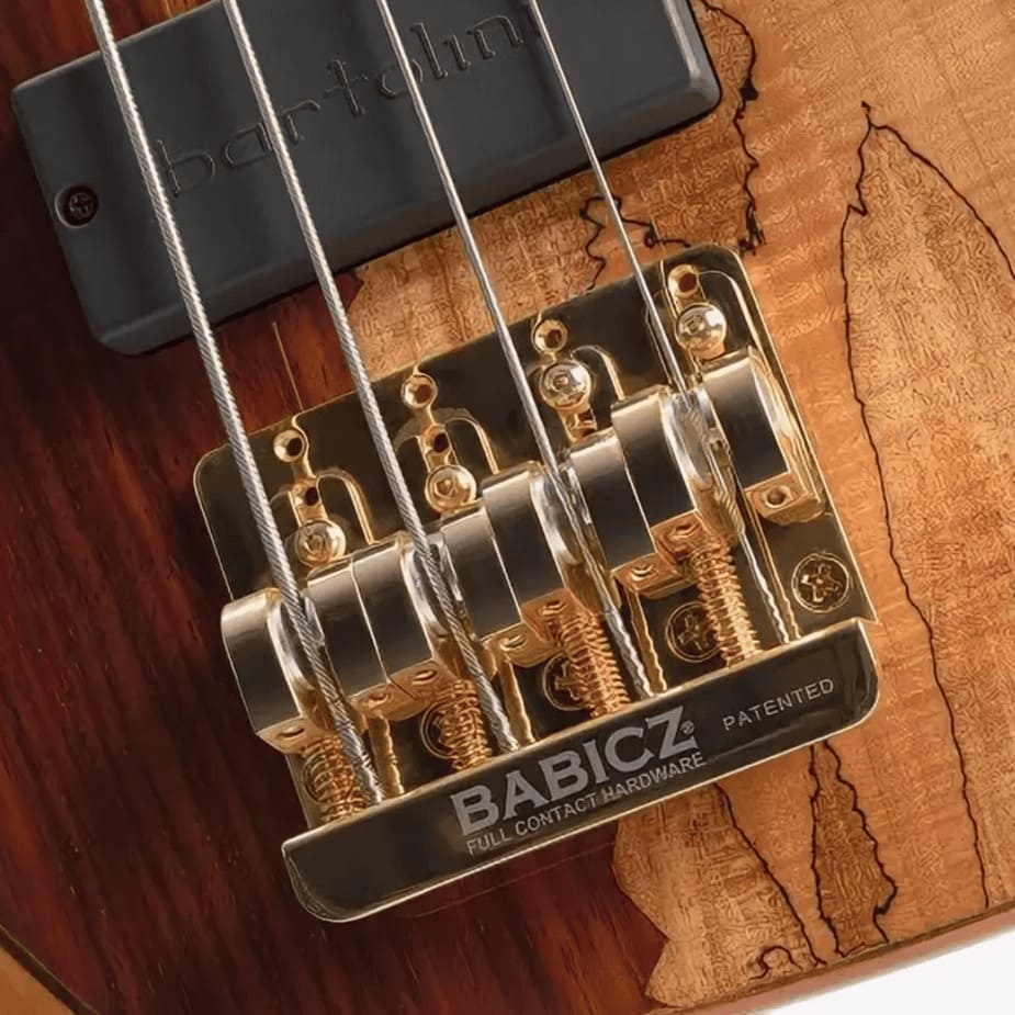 Полный контакт фурнитуры приводит к увеличению динамического диапазона, сустейна, стабильности высоты звучания. Действие и настройки интонаций остаются неизменными даже когда вы снимаете струну.