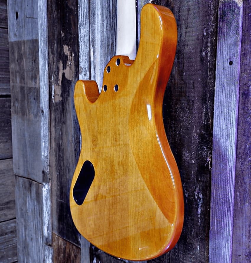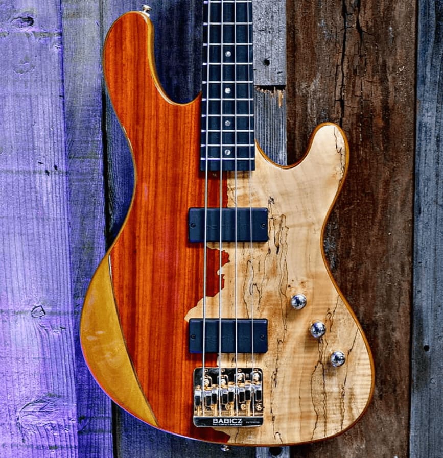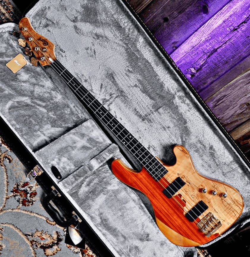 Корпус этой бас-гитары изготовлен из ольхи с топом из красивой экзотической древесины. Она оснащена двумя звукоснимателями «мыльницами» Bartolini Jeff Berlin, бриджем Babicz Full Contact, одним регулятором громкости, одним — баланса, одним — тона, пассивной электроникой и золотистой фурнитурой. Кленовый гриф с накладкой и палисандра и колковой механикой Hipshot Ultralight, расположенной в линию. Этот инструмент рассчитан на игру в пониженном строе, установлены струны DR Strings Custom DDT (Drop Down Tuning).