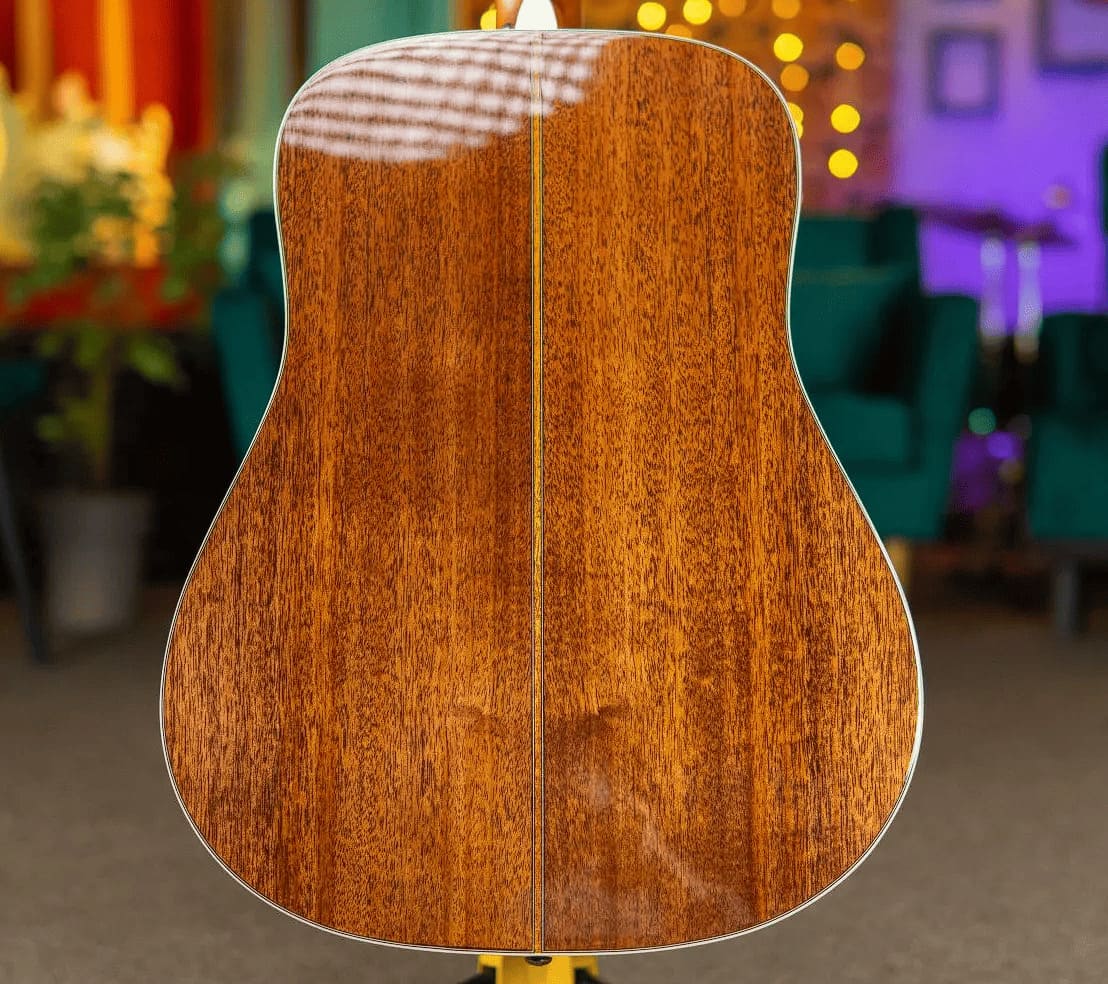 Именно процесс термической обработки, который представляет собой запекание ели в специальной духовке до получения деки темного оттенка, придает древесине прочность, но при этом сохраняет некую мягкость. Благодаря таким свойствам звучание становится громким, винтажным и благородным. Кристально чистое звучание сохраняется и на верхних частотах, что не может не радовать гитаристов, предпочитающих технику фингерстайла.