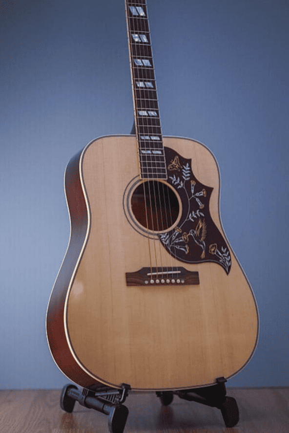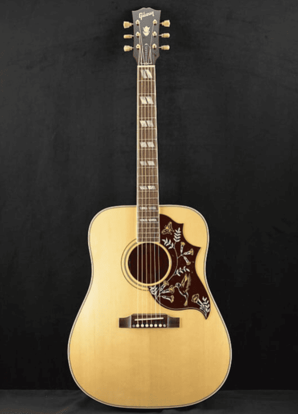 Ни с чем не сравнимая Gibson Hummingbird известна как одна из самых замечательных акустических гитар компании. В новом дизайне Hummingbird Original сочетаются винтажные элементы декора и современное высококачественное исполнение. Модель в отделке Antique Natural оснащена золотыми тюнерами Gotoh Keystone, двойным состаренным переплётом, традиционной крышкой для фирменных стержней Hummingbird, костяным порожком и седлом. Инструмент поставляется в комплекте с кейсом.