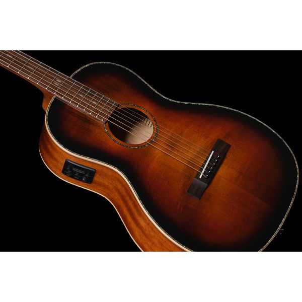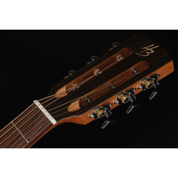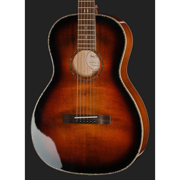 Верхняя дека из массива ситкинской ели, а также спинка и обечайка из красного дерева придают модели хорошо сбалансированный, но в то же время целенаправленный отклик. Древесина Purple Heart, которая используется для грифа этого инструмента, не только наделяет его насыщенным фиолетовым оттенком, но и способствует получению яркого и отчётливого тона с выраженной атакой. В свою очередь компактная форма модели обеспечивает приятное звучание и комфортную игру. Встроенный пьезоэлектрический звукосниматель HB-03 Piezo Pickup поможет усилить звук без ущерба для тембра или качества.