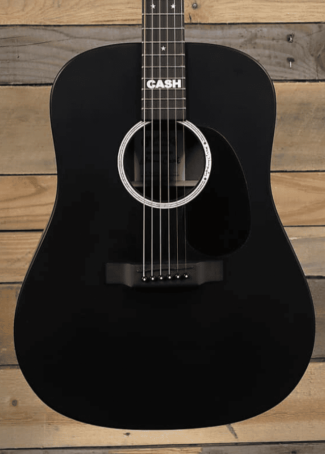 Гитара Martin Guitars DX Johnny Cash имеет прочный корпус Dreadnought, полностью выполненный из пластика высокого давления. Гриф с профилем, изготовленным на заказ, сделан из ламината чёрной берёзы и соединён с кузовом врезным и шипованным креплением на уровне четырнадцатого лада. Накладка из ричлайта оснащена мензурой 25,4 дюйма, верхним порожком из чёрного кориана шириной 44,45 дюймов, 20 ладами со вставками в виде звёзд и авторской инкрустацией «CASH».