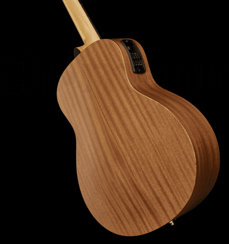 Гитара GS Mini-e Mahogany имеет уменьшенный корпус Grand Symphony в матовой отделке натурального цвета с пикгардом из чёрного пластика. Модель обладает верхней декой из красного дерева, многослойной спинкой и обечайкой из сапеле, что обеспечивает насыщенный среднечастотный звук с достаточной проекцией для джемов с друзьями и живых выступлений. Изящный дизайн грифа Taylor облегчает настройку и оснащён накладкой из чёрного дерева с укороченной мензурой 23,5 дюйма. Встроенный звукосниматель ES-B с удобным цифровым тюнером гарантирует чистое и естественное усиленное звучание.