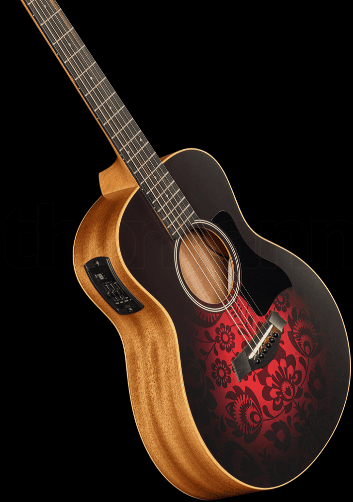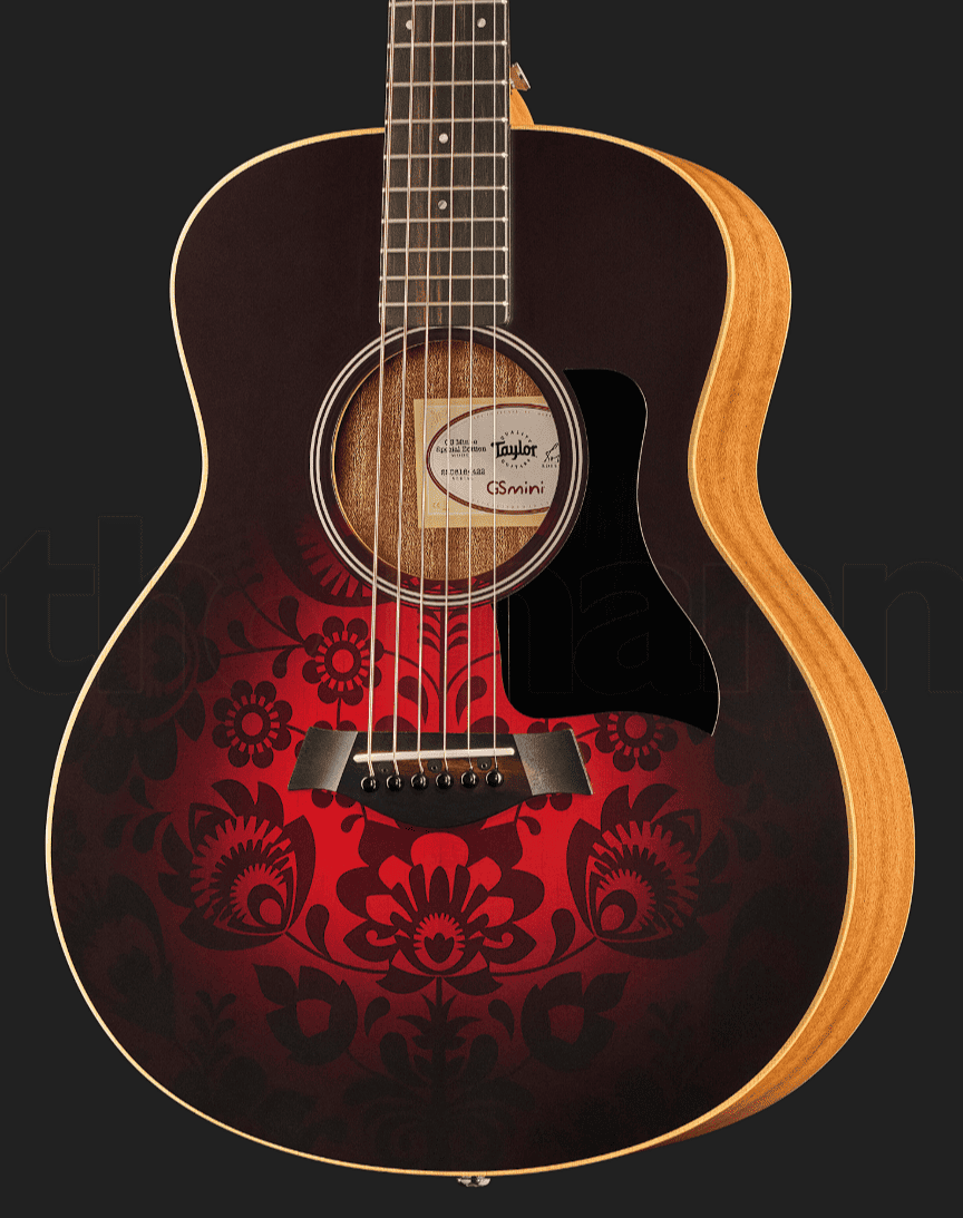 Гитара Taylor GS Mini-e Special Edition в отделке Victorian Burst обладает уменьшенным корпусом Grand Symphony, что делает модель удобной для путешествий и начинающих музыкантов. Верхняя дека выполнена из ели для придания звучанию мощности и яркого тона, а спинка и обечайка — из сапеле для прочности и долговечности. Гриф из красного дерева оснащён накладкой из чёрного дерева, верхним порожком NuBone шириной 42,8 мм и 20 ладами с инкрустацией в виде точек.