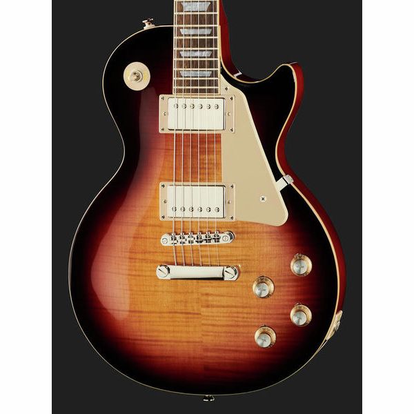 Гитара Epiphone Les Paul Standard '60s в отделке Bourbon Burst имеет корпус Les Paul из красного дерева с топом из огненного клёна сорта АА. Вклеенный гриф из красного дерева обладает тонким профилем SlimTaper «С» образца 1960-х годов, который удобно лежит в руке. Накладка из лавра оснащена 12-дюймовым радиусом для облегчения изгибов струн, мензурой 24,75 дюйма и 22 средними ладами с перламутровой инкрустацией в виде трапеций.