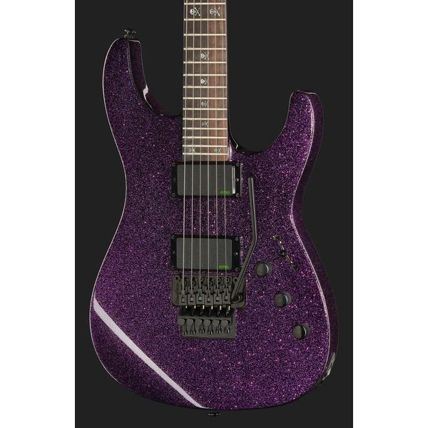 The LTD KH 602 - это подписная гитара Кирка Хёмметта из Металлики, которая предлагает почти всё то же, что и её старшая сестра, ESP KH-2, но по куда более привлекательной цене. Доступная теперь и в цвете Purple Sparkle, эта гитара, основанная на оригинальной гитаре самого Кирка из Custom Shop, KH-602 имеет сквозной гриф, корпус из ольхи, кленовый гриф профиля Extra Thin U, накладку из пау-ферро с 24 ладами и инкрустацией Кирка с черепами и костями. Гитара оборудована Floyd Rose 1000 и набором подписных звукоснимателей EMG Kirk Hammett Bone Breaker. Это мощная и серьезная гитара, созданная для профессиональной записи и живым выступлениям, которая подойдёт любому "громкому" гитаристу.