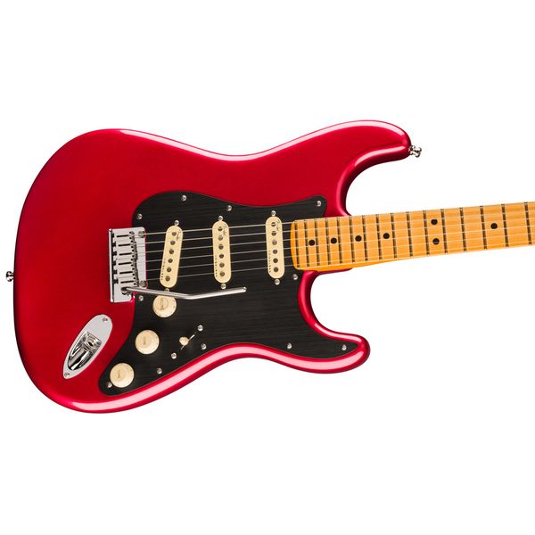 Гитара Fender Am Ultra II Strat MN SRD в красной отделке с глянцевым покрытием обладает корпусом Stratocaster из отборной ольхи. Кленовый гриф на болтах усилен анкерным стержнем Bi-Flex и имеет усовершенствованный профиль Modern «D», который удобно лежит в руке. Накладка из клёна оснащена универсальной мензурой 25,5 дюйма, составным радиусом 10-14 дюймов для комфортной игры и 22 ладами среднего размера с перламутровой инкрустацией белыми точками шириной 7 мм.