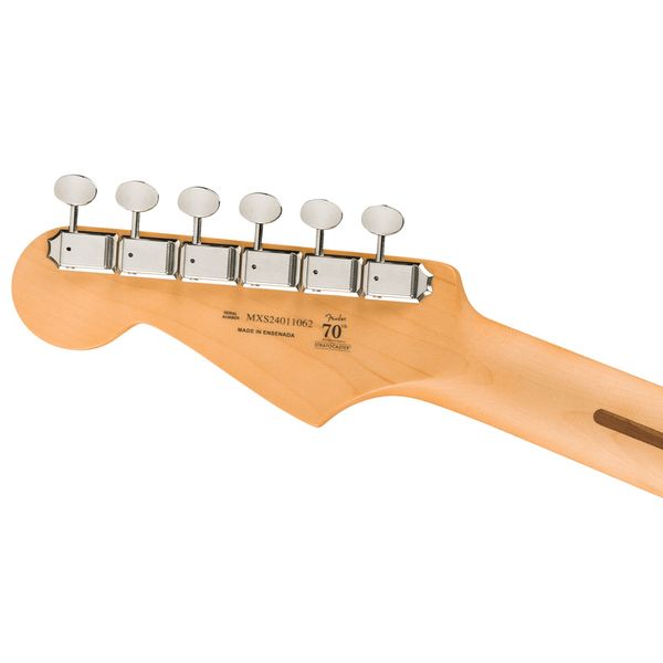 Корпус гитары: Алюминиевое дерево. Гриф на болтах: Клён. Фretboard: РозаWOOD. Инкрустация фретборда: белые точки. Профиль грифа: Modern "C". Радиус грифа: 241 мм (9,5"). Мензура: 648 мм (25,5"). Ширина грифа в районе ладов: 42 мм (1,650"). Лады: Синтетический кость. 22 Medium jumbo лада. Пикпапы: 1 Player Series Alnico 2 хамбакер (бридж), 2 Player Series Alnico 5 Strat сингл-коил (средний и гриф). Управление: 1 громкости, 2 тембра. 5-позиционный переключатель. Плюшевый пластиковый дефлектор в папье-маше. 2-точечный синхронизированный тремоло с загнутыми стальными седлами. Механические головки Fender ClassicGear. Оборудование: Никель/хром. Струны: Fender USA 250L никелированные сталь .009 - .042. Цвет: Polar White.