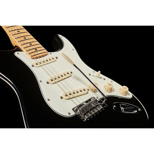 Гитара Fender Player II Stratocaster MN в отделке Black обладает корпусом из ольхи. Болченый, кленовый гриф с профилем Modern «C». Кленовая накладка оснащена радиусом 9,5 дюйма, универсальной мензурой 25,5 дюйма и 22 средними ладами с инкрустацией в виде чёрных точек.