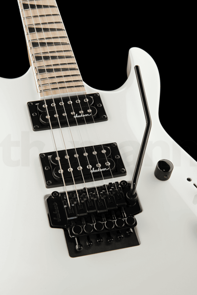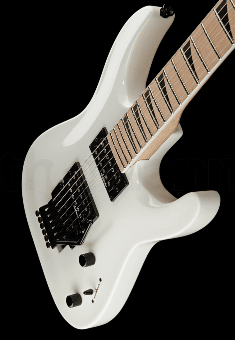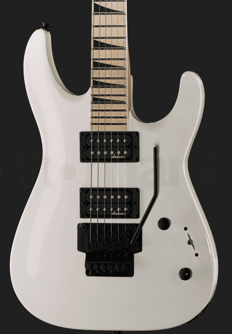 Классический суперстрат от Jackson в белоснежном цвете, флойдом и двумя мощными хамбакерами. 24 Jumbo лада и скоростной тонкий гриф идеальны для исполнения техничных ритм партий и соло.