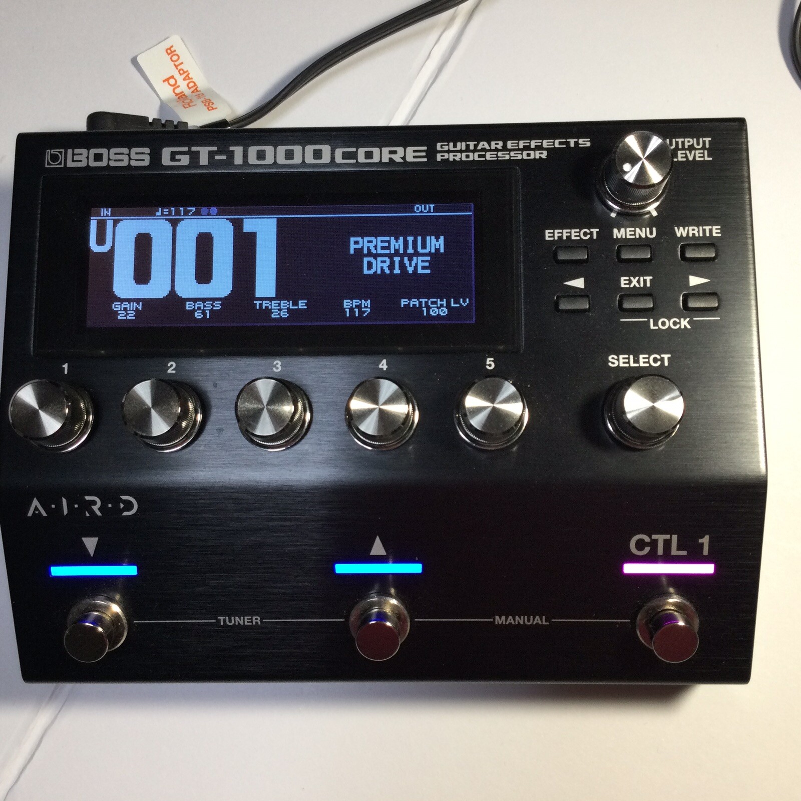 Boss GT-1000CORE - Педаль мультиэффектов для электрогитары и баса - мощная и универсальная - полная обработка гитары и баса доступна в одном педали с полной мощностью DSP флагманского GT-1000 в компактном формате - современное качество звука - передовая технология AIRD - 24 блока одновременных эффектов - и более 140 уникальных типов усилителей / эффектов для неограниченного творческого самовыражения - подходит для любой конфигурации педалборда и одинаково хорошо работает как автономный процессор для игры вживую и в студии - гибкие соединения - обширная поддержка управления - элементы управления: 1-5, выбор, уровень вывода - кнопки: эффект, меню, выход, запись, страница - дисплей: графический ЖК-дисплей 256 x 80 точек - ножные переключатели: вниз, вверх, Ctrl 1 - Подключения: вход R / Mono и L (2 x 1/4 "разъема), выход R / Mono и L / Phones (2 x 1/4" TRS-jack), Send & Return 1 (2 x 1/4 "Klnke ), Send & Return 2 (2 x 1/4 "Klnke), CTL 2,3 / EXP 1 (1/4" TRS-jack), CTL 4,5 / EXP 2 (1/4 "TRS-jack), MIDI вход и выход (1/8 "TRS-джек), USB Micro-B-Power Su Соединительный элемент: цилиндрический соединитель 5,5 x 2,1 мм, центральный отрицательный, питание от источника постоянного тока (в комплекте) Размеры (Ш x Г x В): 173 x 135 x 65 мм (6,81 "x 5,31" x 2, 56 дюймов) - Вес: 920 г (2,03 фунта) - Примечание: работа от батареи не поддерживается