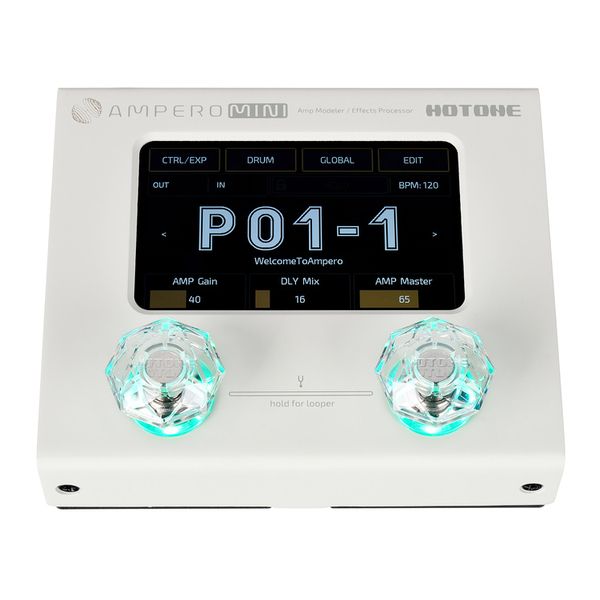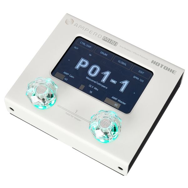 Ampero Mini — самая миниатюрная модель в семействе процессоров Ampero, предлагающая бескомпромиссный звук Ampero в сверхкомпактном алюминиевом корпусе. В нем есть все необходимое: потрясающий арсенал эффектов и поддержка IR-импульсов сторонних производителей. Набора основных входов и выходов более чем достаточно для повседневного использования, а сенсорный экран и интуитивно понятный пользовательский интерфейс обеспечивают легкую и простую работу с устройством. Ampero Mini располагает отличными характеристиками по доступной цене, что особенно подойдет музыкантам, которые хотят познакомиться со звуком процессоров Ampero, новичкам с ограниченным бюджетом, сессионным музыкантам, которым нужен ультракомпактный гитарный процессор с профессиональным звуком, и даже опытным исполнителям, использующим функционал моделирования усилителей.