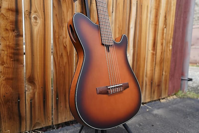Изготовленная на заказ электроника со звукоснимателем Ibanez T-bar под седлом обеспечивают удобное управление и усиление естественного звучания инструмента. Модель дополнена бриджем из грецкого ореха, звуковым отверстием на обечайке и золотистыми колками в классическом стиле.