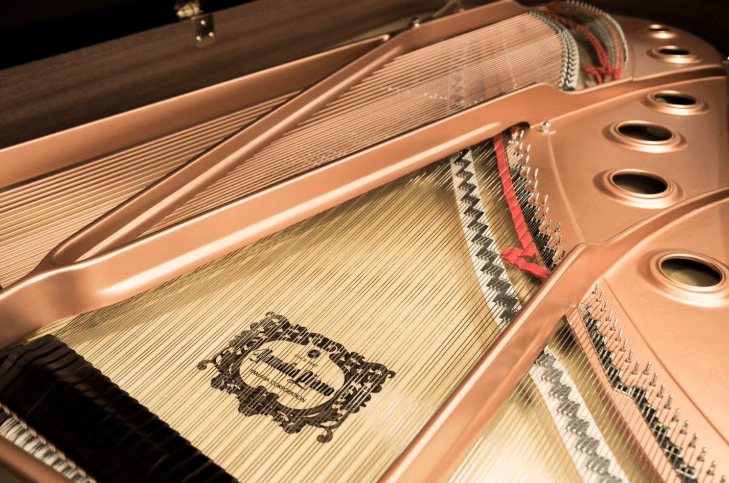 • Чугунная рама, выдерживающая силу натяжения струн в 20 тонн.