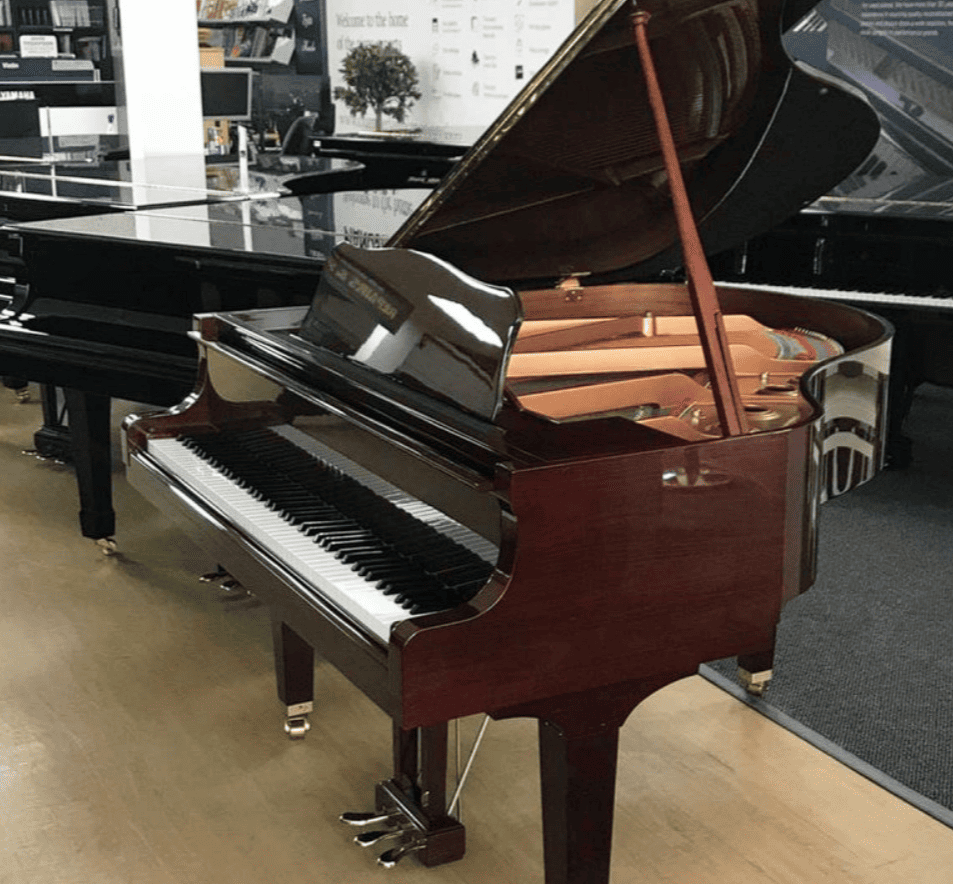 Рояль Yamaha GB1K G доступен в цвете полированное красное дерево (цвет георгианский махагон).