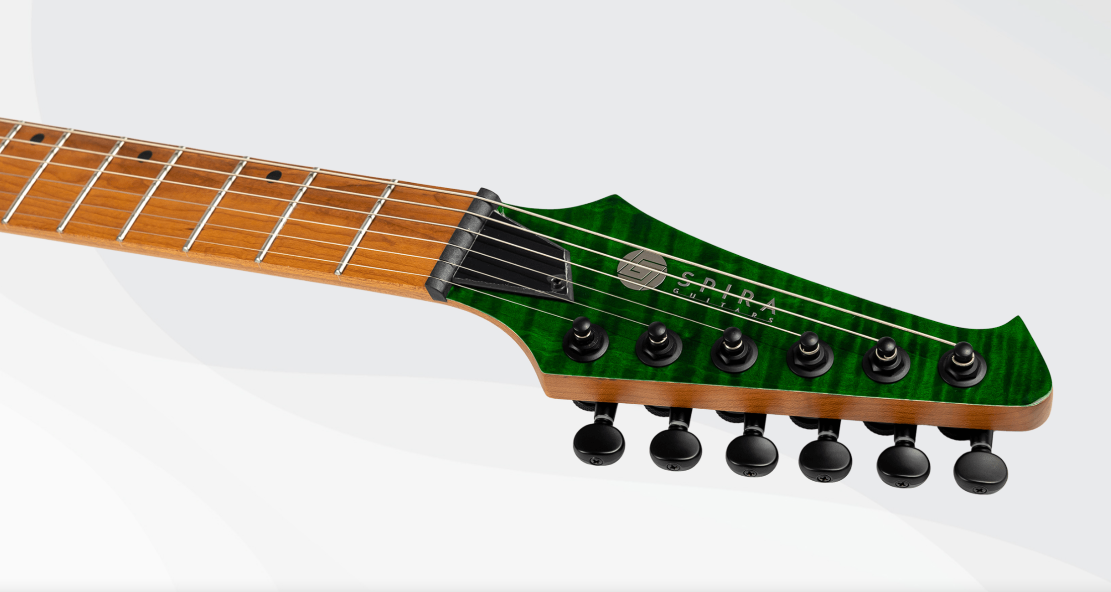S-450 оснащена изготовленным на заказ хамбакерами Villain™ от Spira, которые обеспечивают мощные и артикулированные тона, идеально подходящие для жанров рок и метал. Фиксированный бридж и черные локовые колки обеспечивают исключительную стабильность и точность настройки.