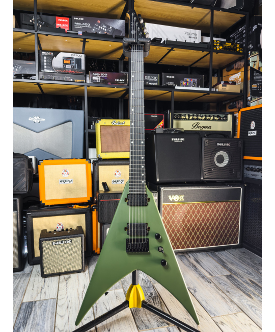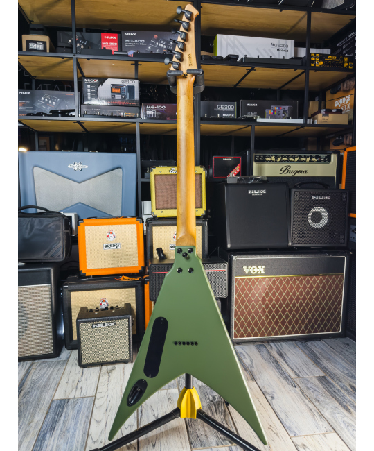 Благодаря корпусу из печеного тополя и грифу из канадского печеного клёна с сатинированной отделкой, V-400 обеспечивает исключительную прочность и комфорт при игре. Накладка грифа из искусственного черного дерева (Ebony Tech) с 24 Jumbo ладами обеспечивает лёгкую скорость и точность для сложных риффов и соло.