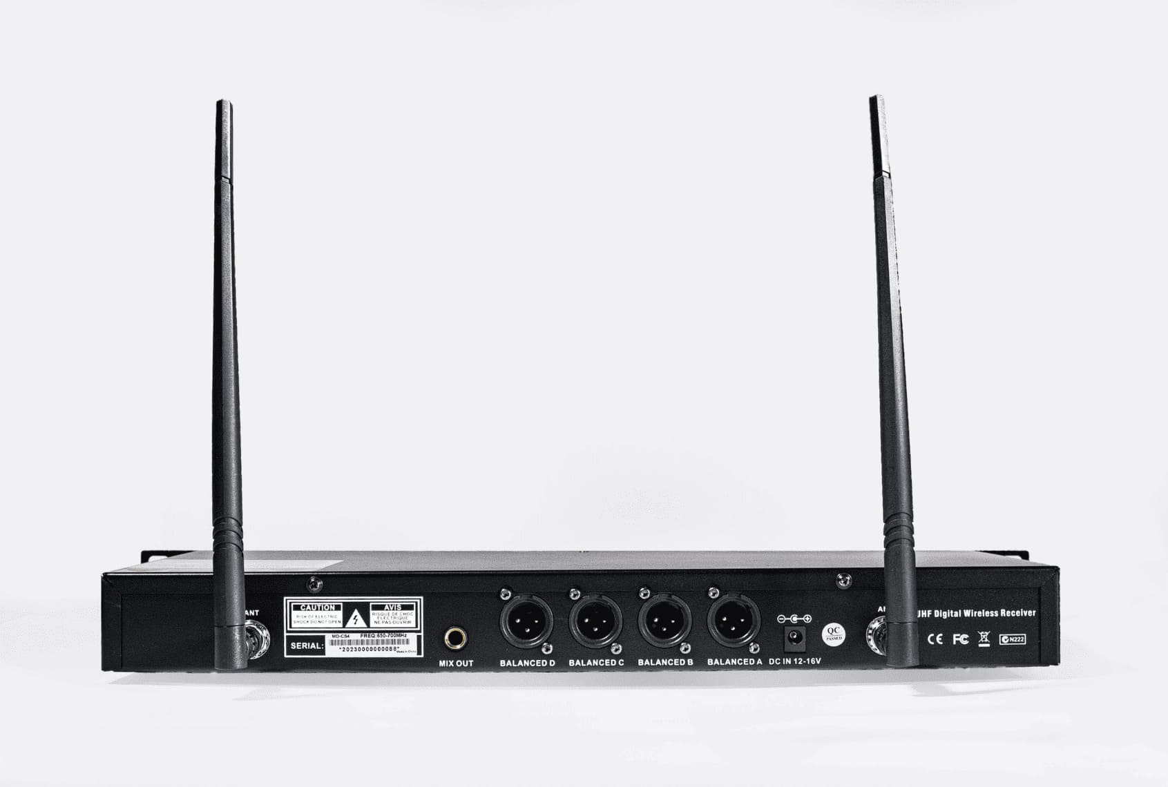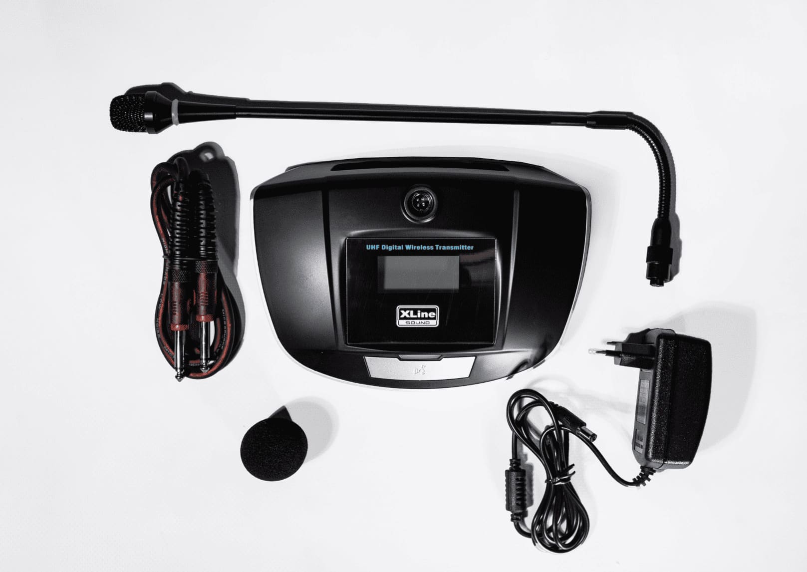 Радиосистема UHF состоящая из 4 настольных радиомикрофонов типа "гусиная шея" и 4-канального приемника.